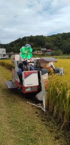 コンバインで、丹精込めて育てたお米を一気に刈り取っていきます。