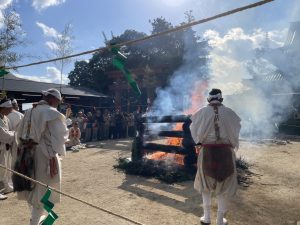 願いを書いた「護摩木」を山伏と呼ばれる修験道が祈祷し、燃え盛る火の中に投げ入れてくださいます。