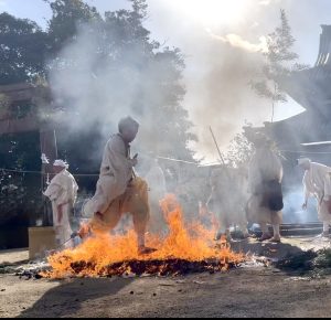 投げ入れたあとは、山伏が火渡り荒行をします。